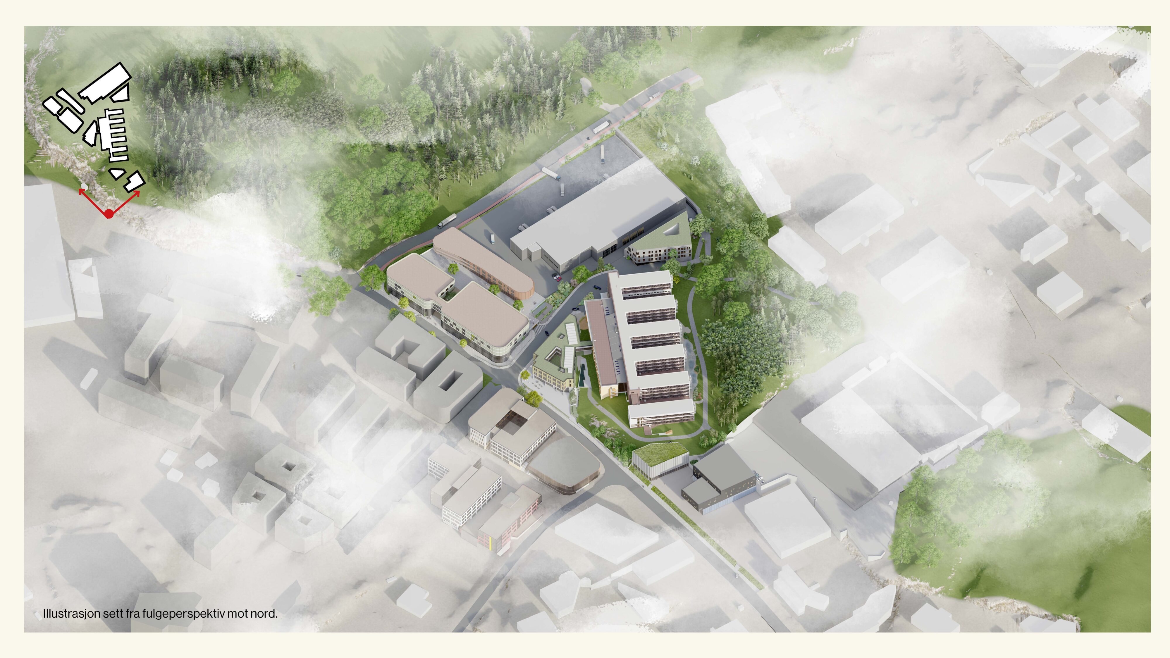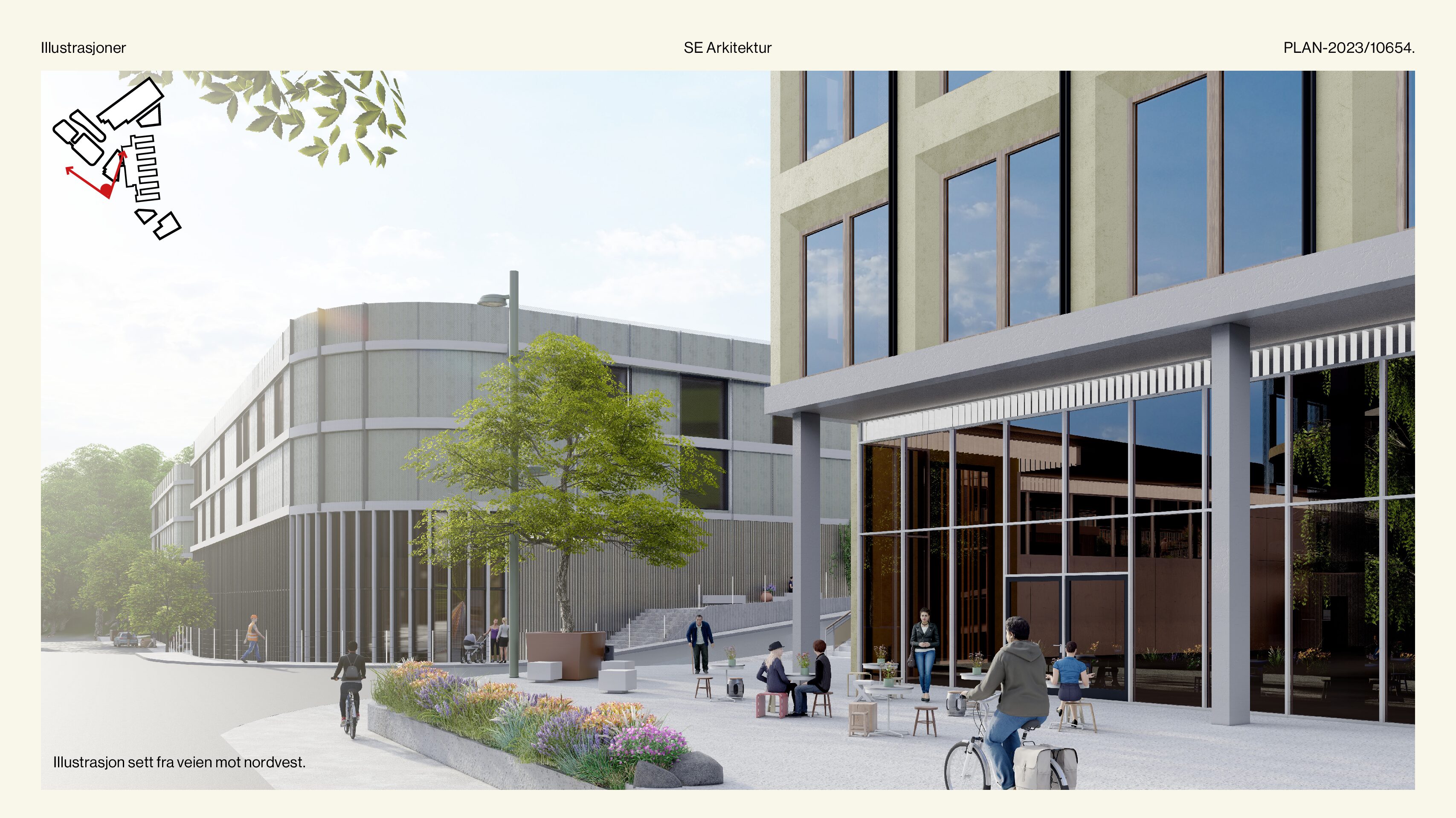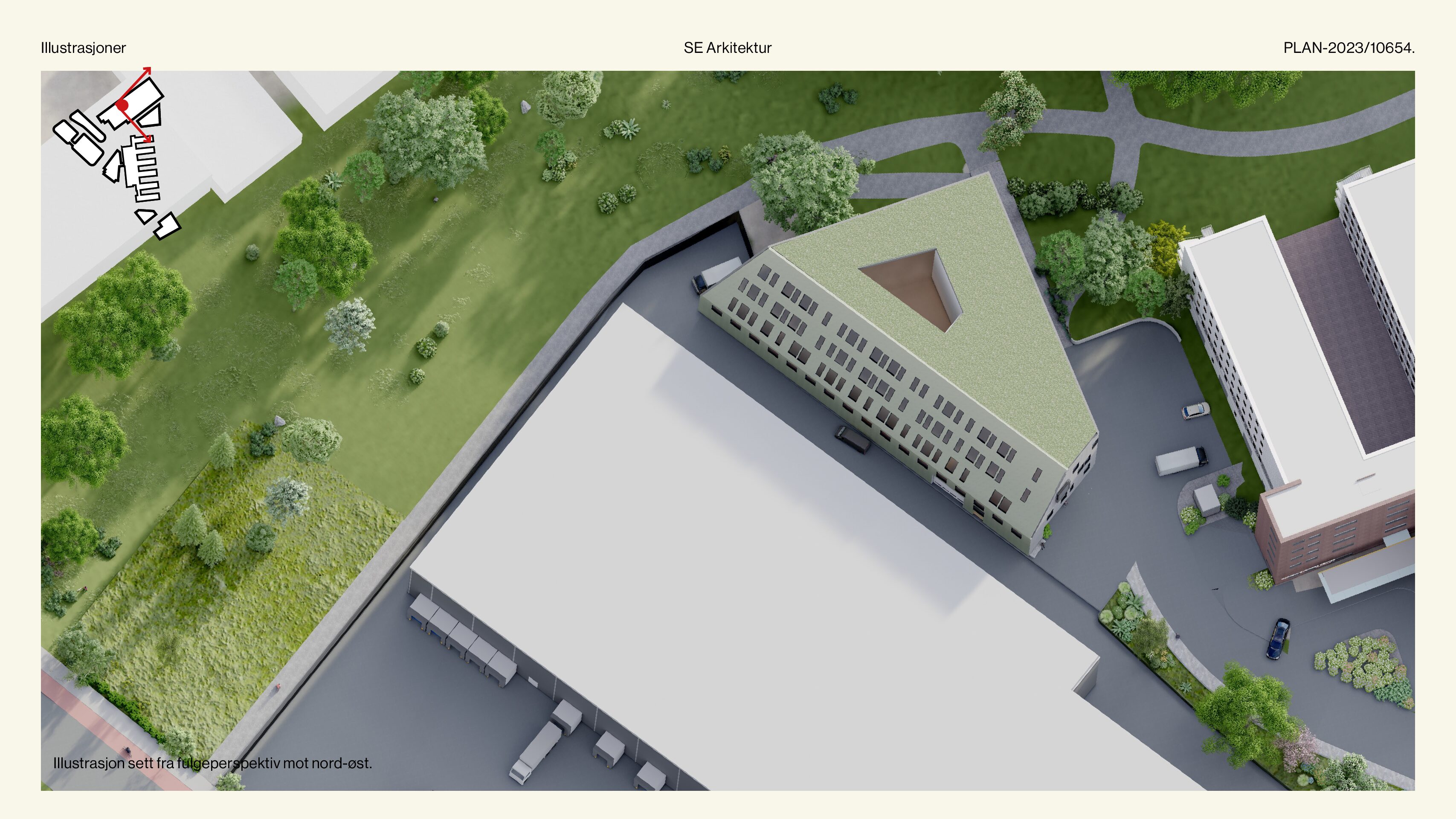 Planen er en del av en større områdeutvikling, der vi utforsker hvordan form, farge og torg kan integreres i et næringsområde og samtidig legge til rette for fremtidens arbeidsplasser. Med 63.000 m² næringsareal fordelt på kontor, handel og lett industri, legges det opp til aktive første etasjer, god tilgjengelighet med kollektivtransport og grønne forbindelser gjennom området.